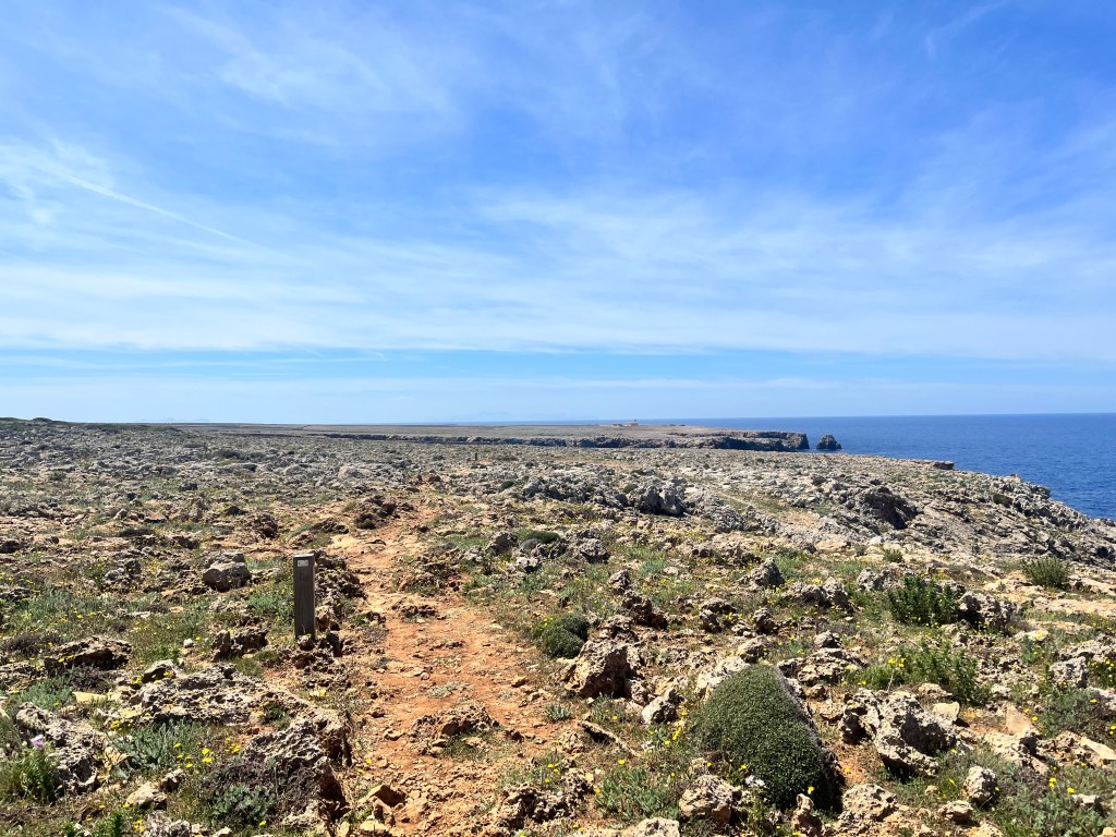 En este grupo de etapas, me tocó caminar por la Menorca Seca. Qué agónico, de verdad. Ni una sombra. Ni un arbusto. Horas y horas de: piedras, piedras y más piedras. Encima tenías que ir mirando atentamente al suelo porque era fácil tropezarse. Aburrido y mirando al suelo, se me hizo eterno. Veía el faro de Punta Nati cada vez más lejos. Me desviaba del camino sin querer por ir mirando al suelo y luego tenía que caminar MÁS.