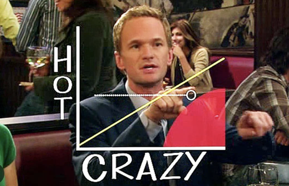 El penúltimo fuego cruzado que viví fue en mi antiguo trabajo. Yo me arrimaba a todo ser que pudiera enseñarme algo, mientras no fuera gilipollas. Y, si lo era, permitía cierto grado según lo que podía aprender. Tipo la gráfica entre HOT-CRAZY de Cómo conocí a vuestra madre.