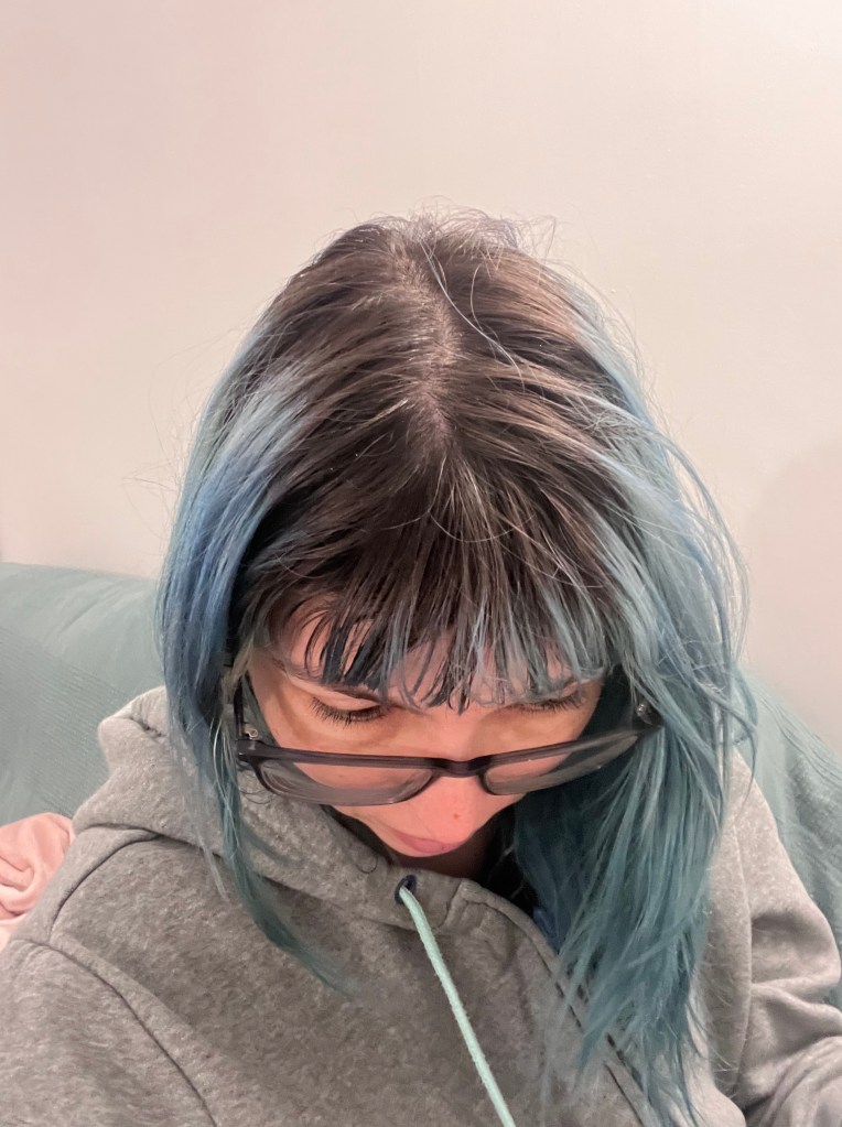 Le comenté que me gustaba el color de pelo de raíz que tenía ahora mismo, así oscurillo casi negro, pero que al crecerme más siempre me cambiaba a un marrón muy feo y que entonces no quedaba bien con el azul y tal.