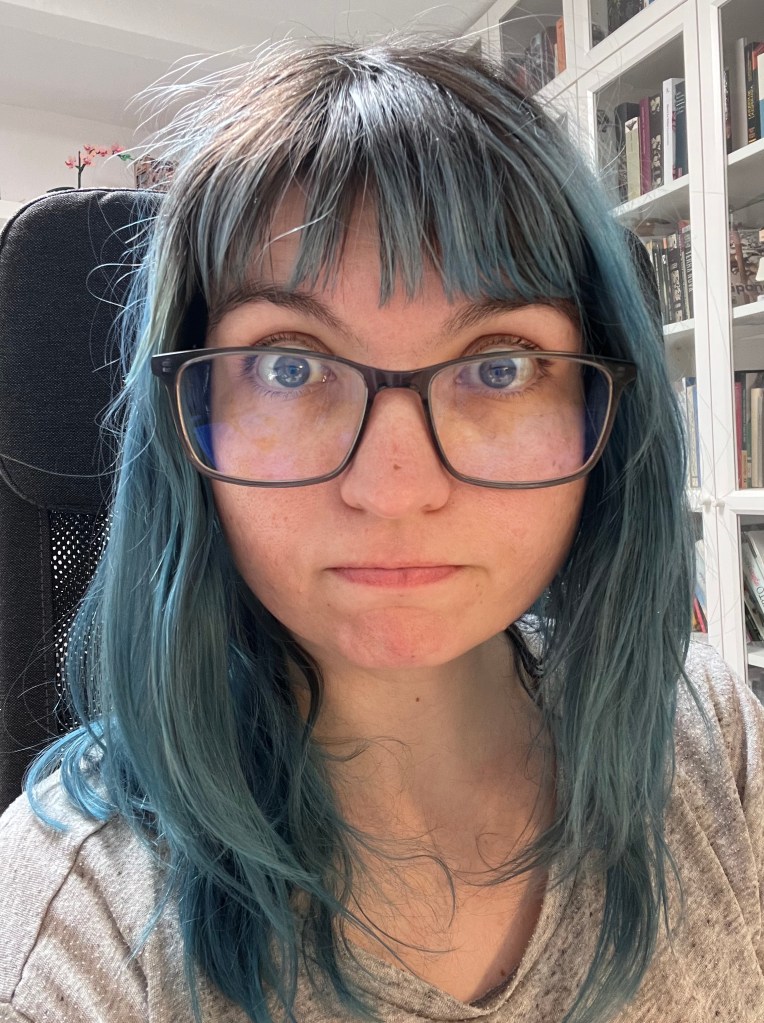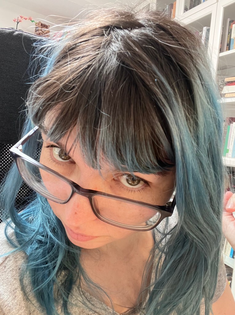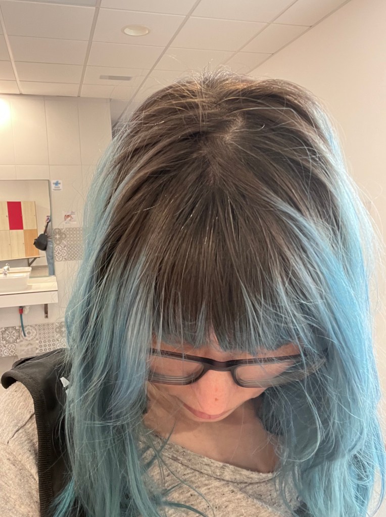 Pues muy guay. Sigue creciendo, se me cae poquísimo, no me pican las raíces y encima crece oscuro, que no sé como puede ser esto pero es The Dream. Y tengo canas, que me encantan. Y como el pelo no crece a la misma velocidad, pues no queda un corte de color muy feo. El flequillo empieza a estar casi todo de color normal, pero visto desde arriba siempre me pega algún foco y disimula. Y como a la que da ansiedad es a mi y gracias a esto no lo veo, pues vamos bien. Pero bueno, cuando vaya a la peluquería ya vemos si podemos empezar a difuminar un poco el cambio de color y vemos qué hacemos con el flequillo. Seguramente me dejaré un trozo de flequillo azul y el resto normal, pero tengo que ver qué opina la experta.
